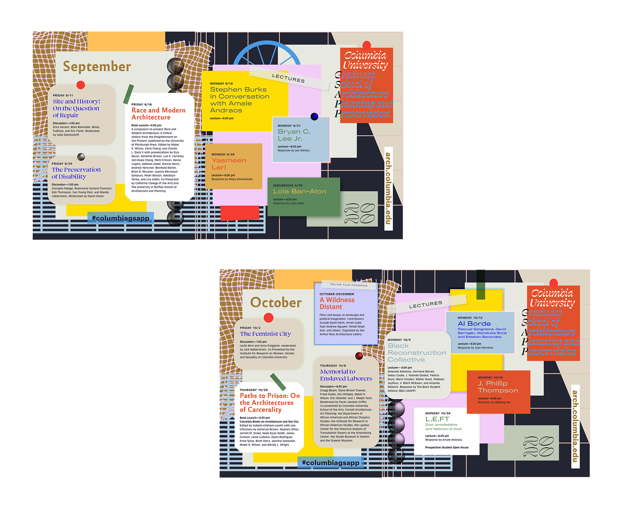 Branding for Columbia GSAPP’s Fall 2020 lecture and event series—including poster designs,