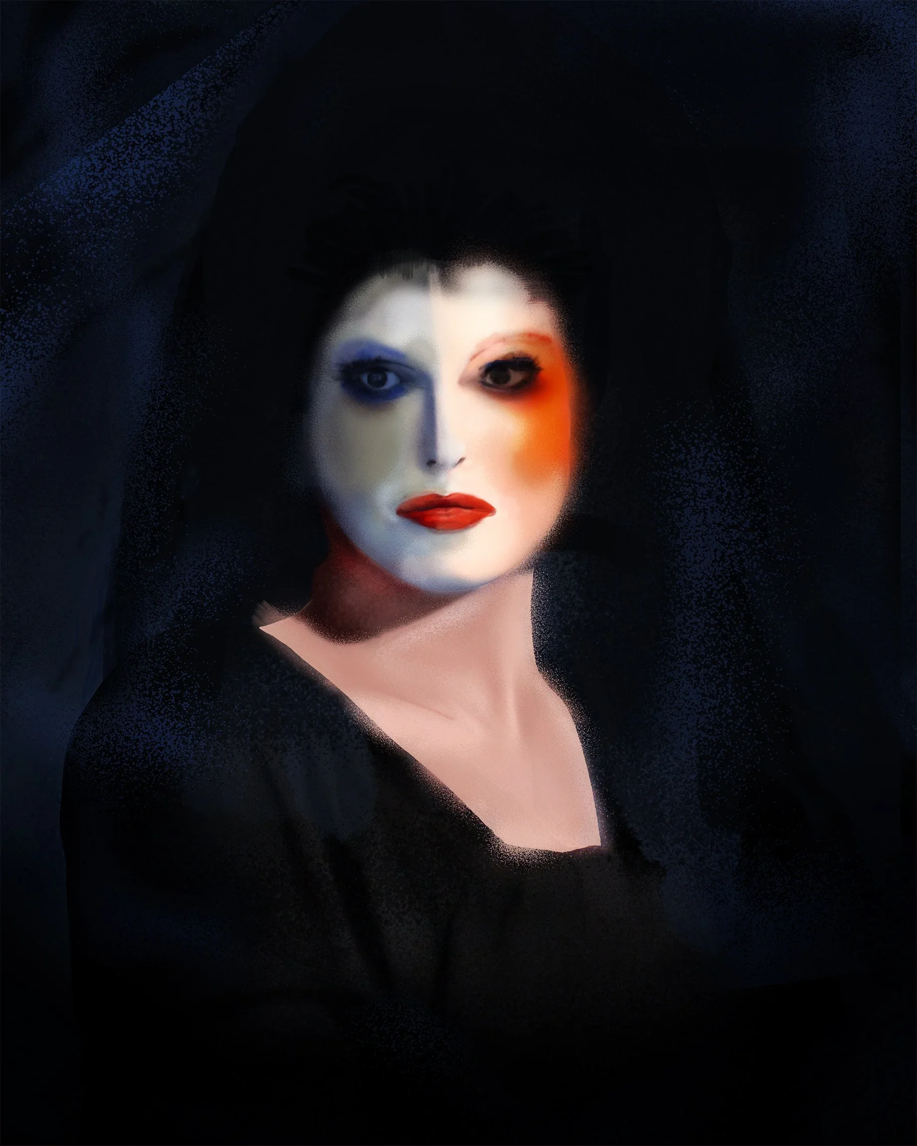 An ongoing series of digital paintings, this one also animated, created with layer upon layer in Photoshop, using AI experiments as source imagery to paint from.