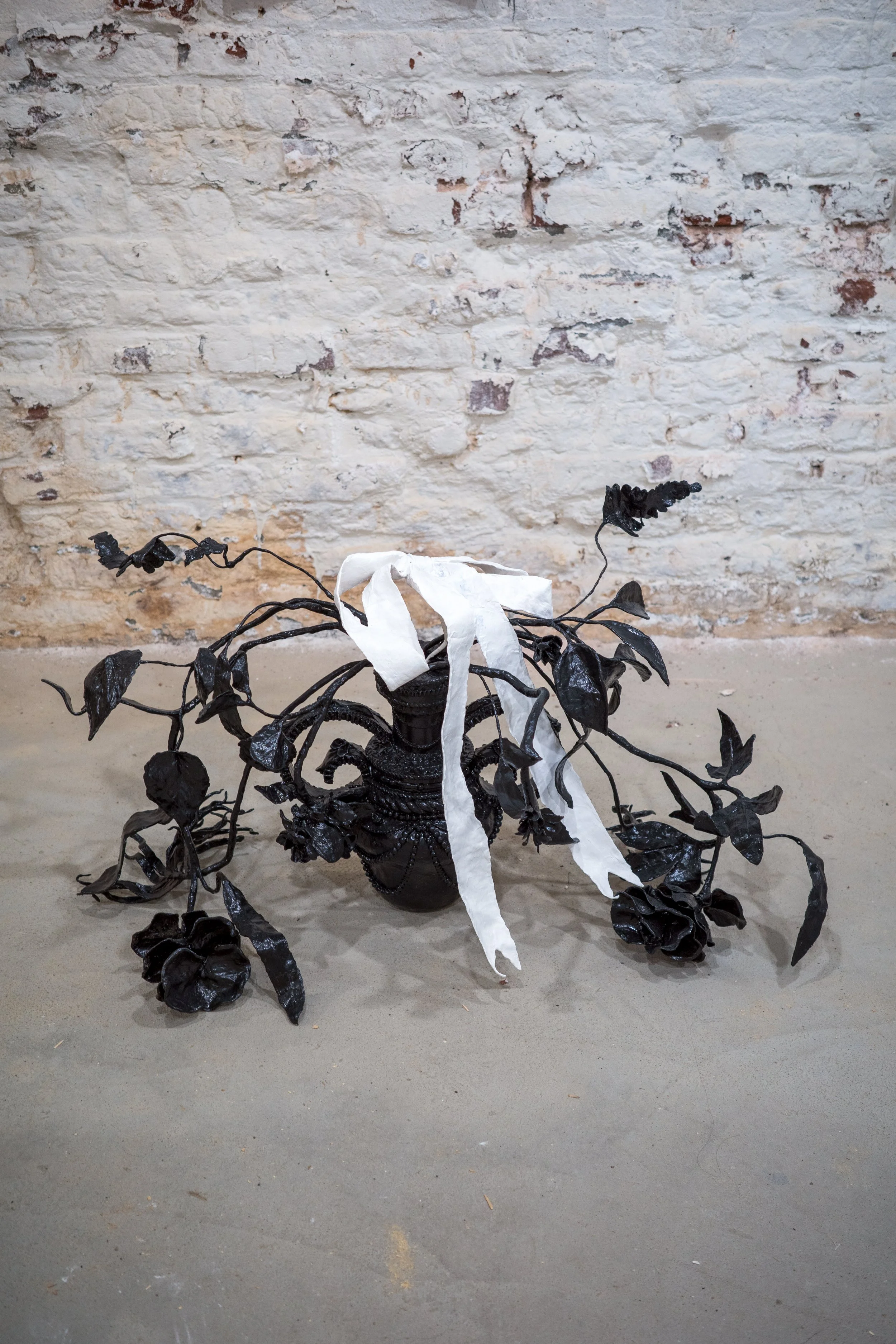 Air-dry flexible porcelain clay, wire, cardboard, paper, fabric, plastic beads, rope.