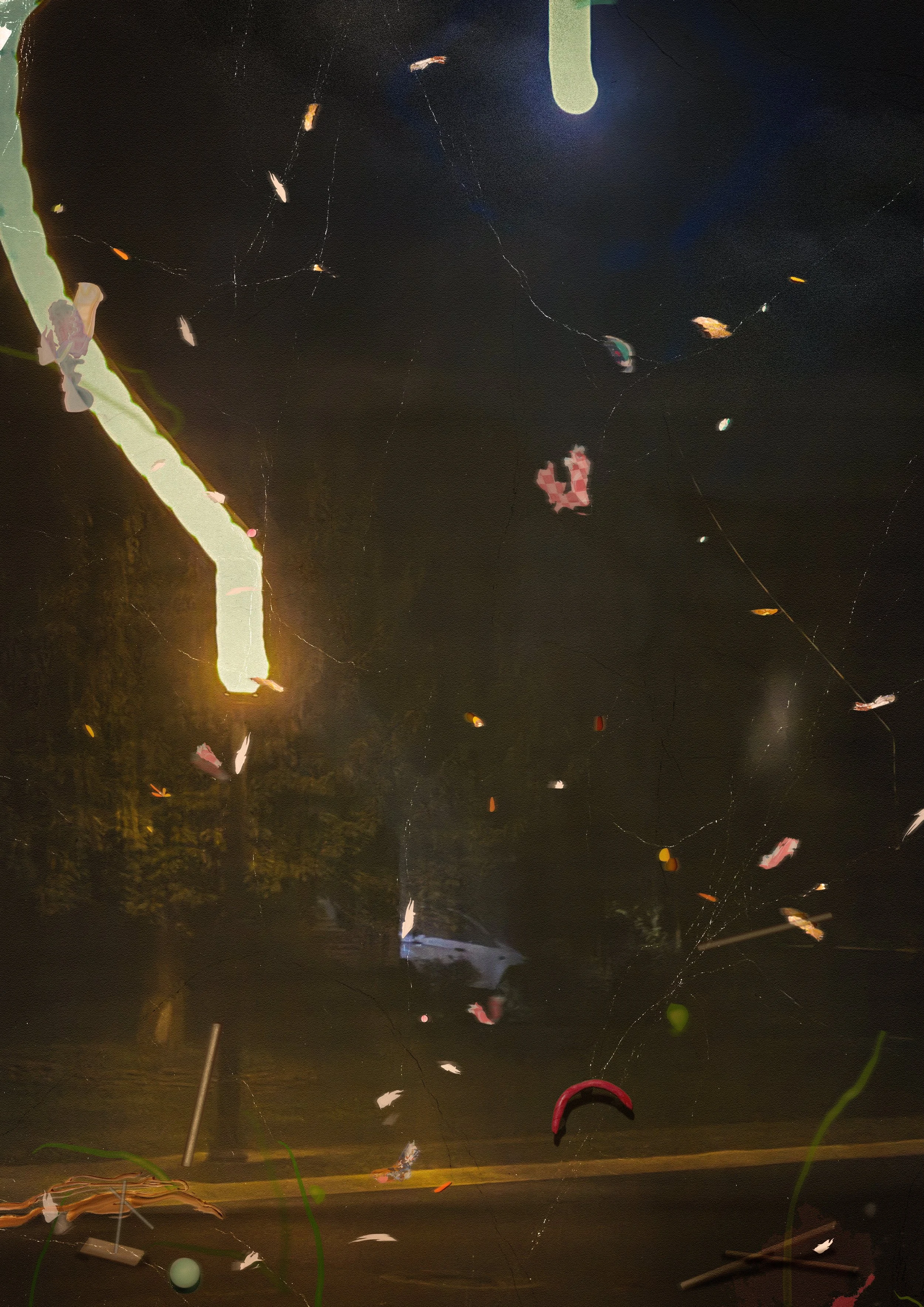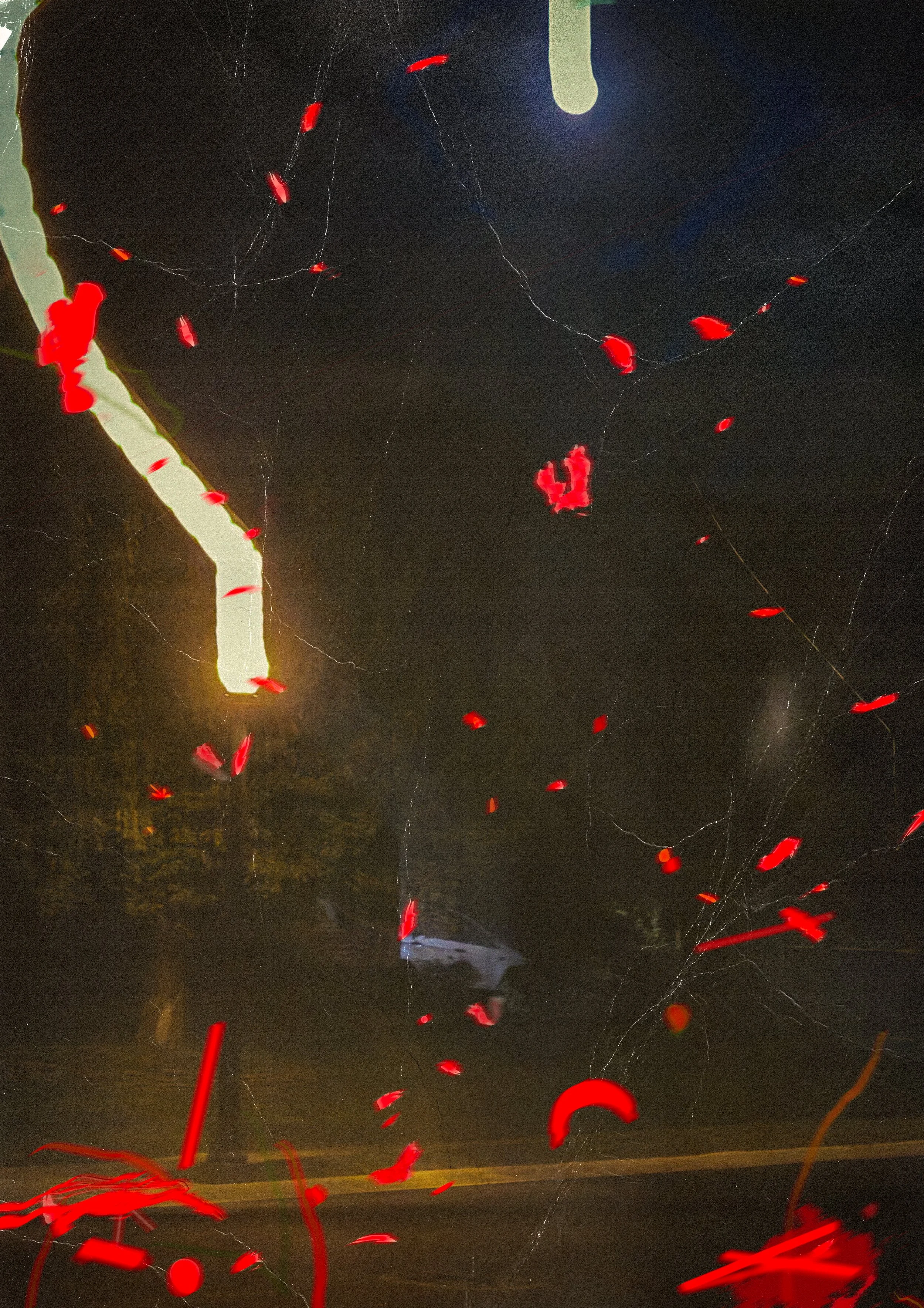 Original photograph (Lititz, PA) with photographed paint blobs and digital bits.